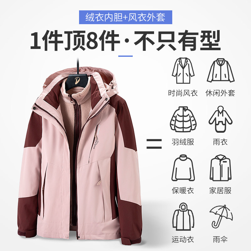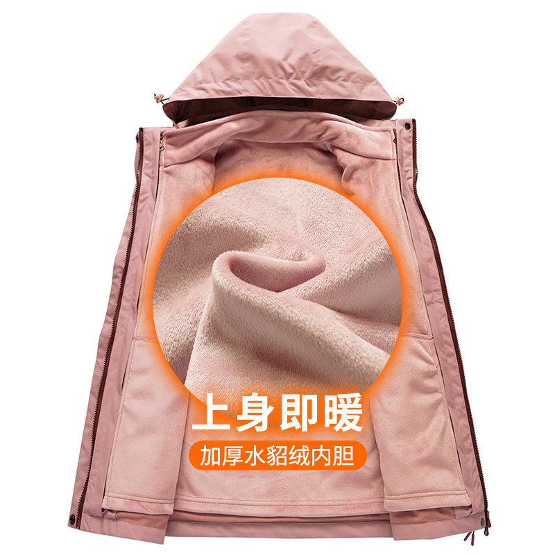 Stormtrooper women winter plus velvet thickened three-in-one detachable windproof size 200 pounds spring and autumn coat men