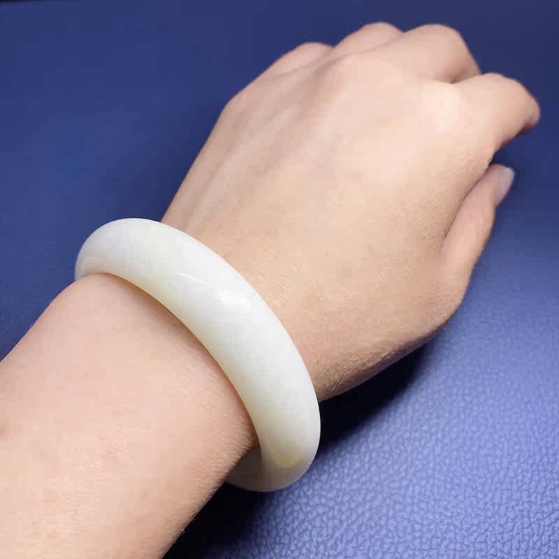 Live selection of natural Liaoning Xiuyan jade bracelet widened and thickened white ladies Wangfu jade bracelet Xiuyan jade gift