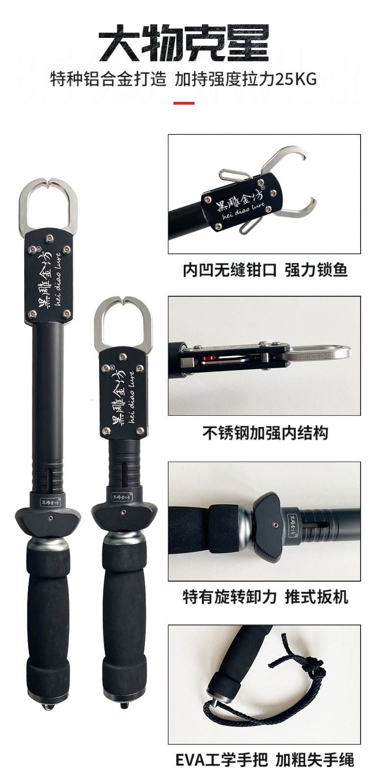 Black carving gold square big object fish control fish control pliers Multi-function fish picker Rotary unloading force Luya clamp fish pliers