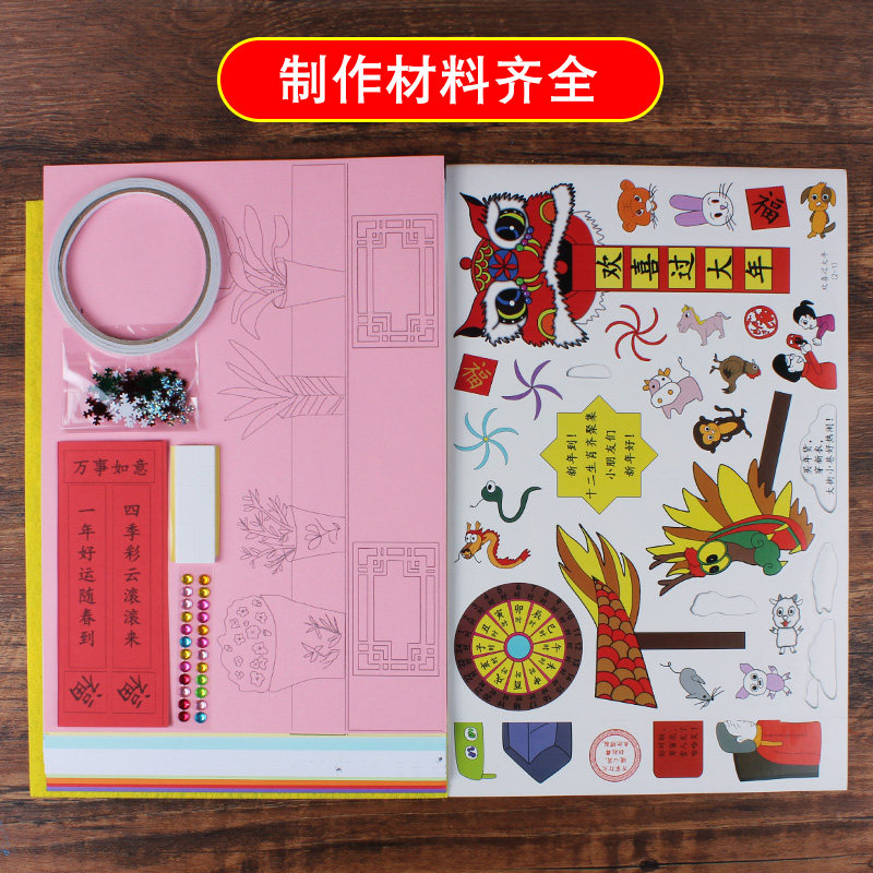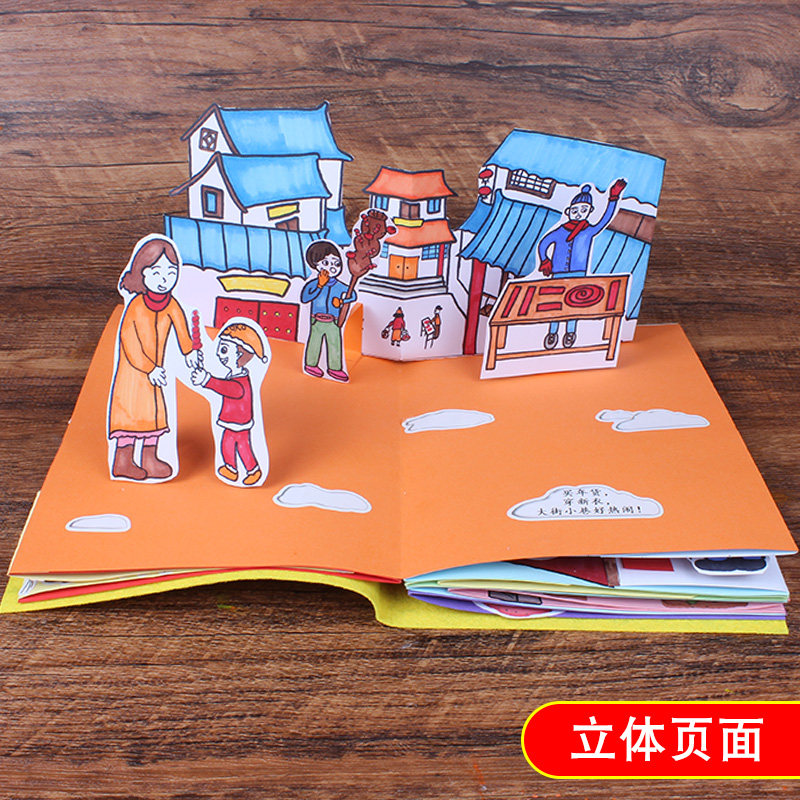 New Year Handmade Pop-up Book Diy Kindergarten Homemade Picture Book Homework Children's Production Materials New Year Spring Festival Lantern Festival
