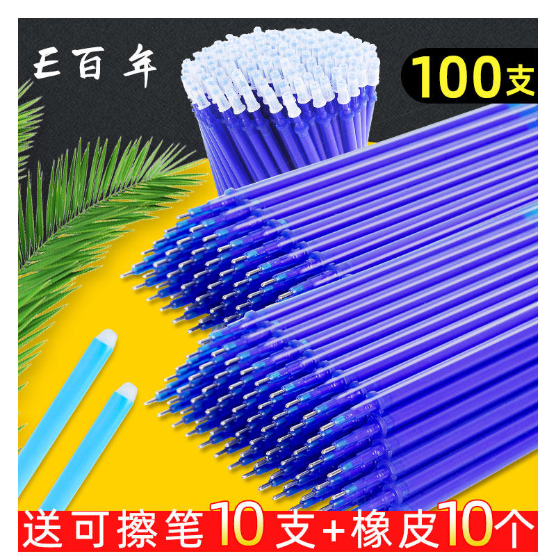 (Crystal blue transparent rod full needle tube) 100 refills to send 10 pens and 10 erasers (black transparent rod full needle tube) 100 refills to send 10 pens and 10 erasers (crystal blue transparent rod full needle
