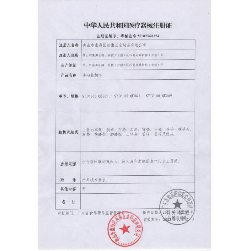 Guangdong Machinery registration 20182560374
