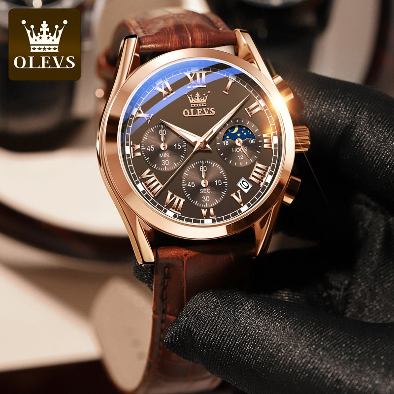The luminous small three-pin 24-hour indication of the lunar phase shows the chasing timing
