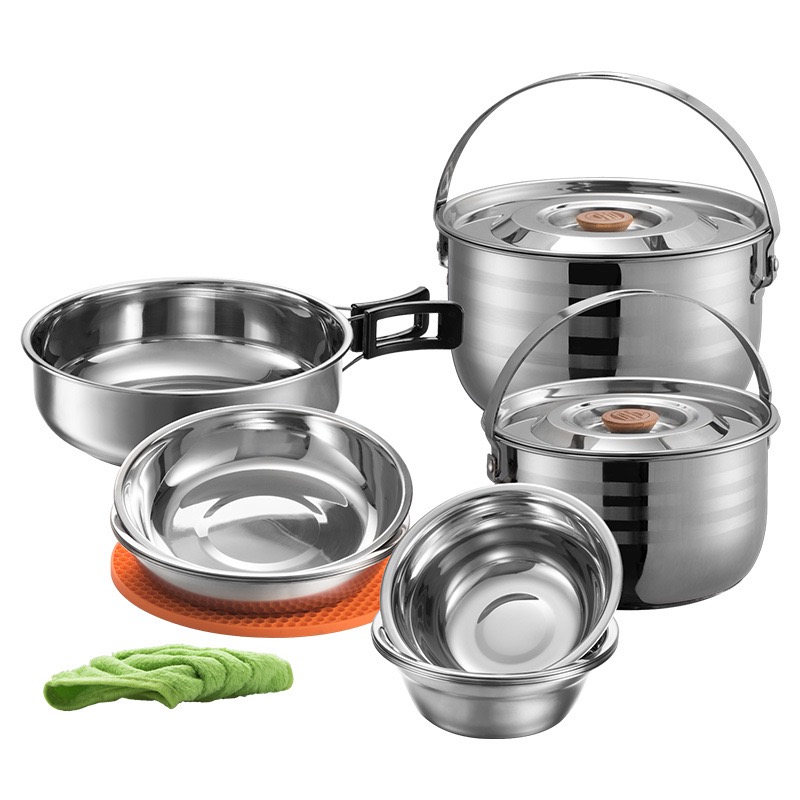 Coman 6-person stainless steel set pot portable picnic pot outdoor frying pan induction cooker gas stove universal