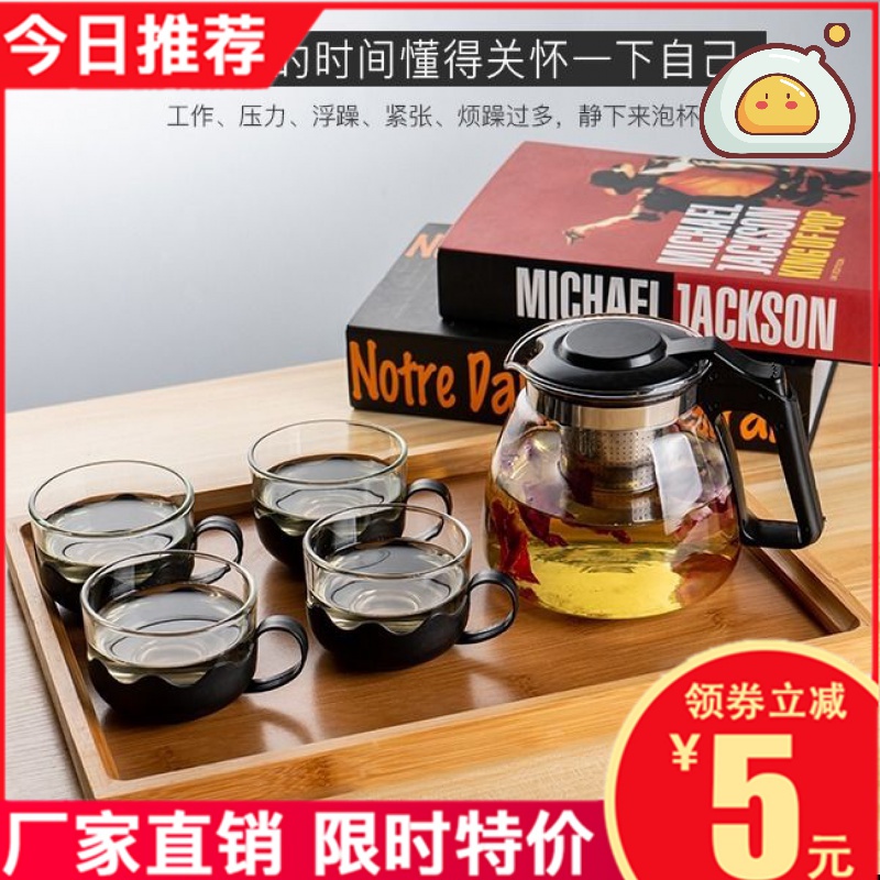 Lilac Heat Resistant Glass Teapot Large Number Single Pot Filter Flower Teapot Red Tea Set Suit Home Flush Tea Kettle