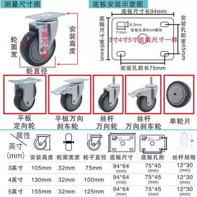 3-inch Flat directional wheel 3-inch Flat universal wheel 3-inch flat universal brake wheel 4-inch flat universal wheel 4-inch Flat universal brake wheel 5-inch flat directional wheel