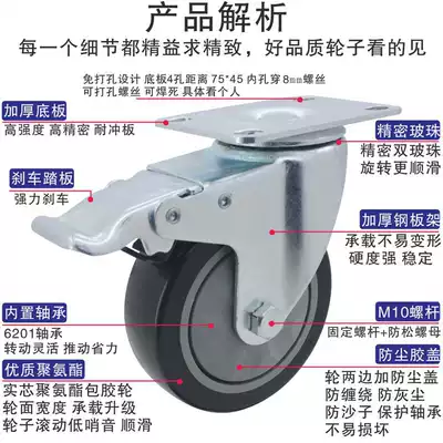 Universal wheel wheel 3 inch 4 inch 5 inch Flat trolley with brake Heavy duty steering PU wheel Polyurethane caster