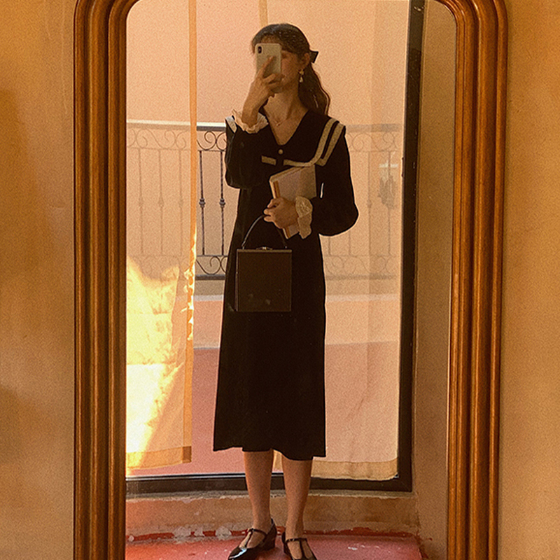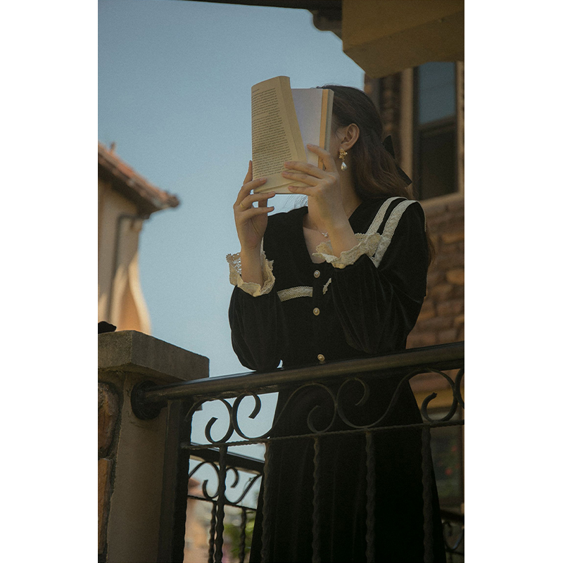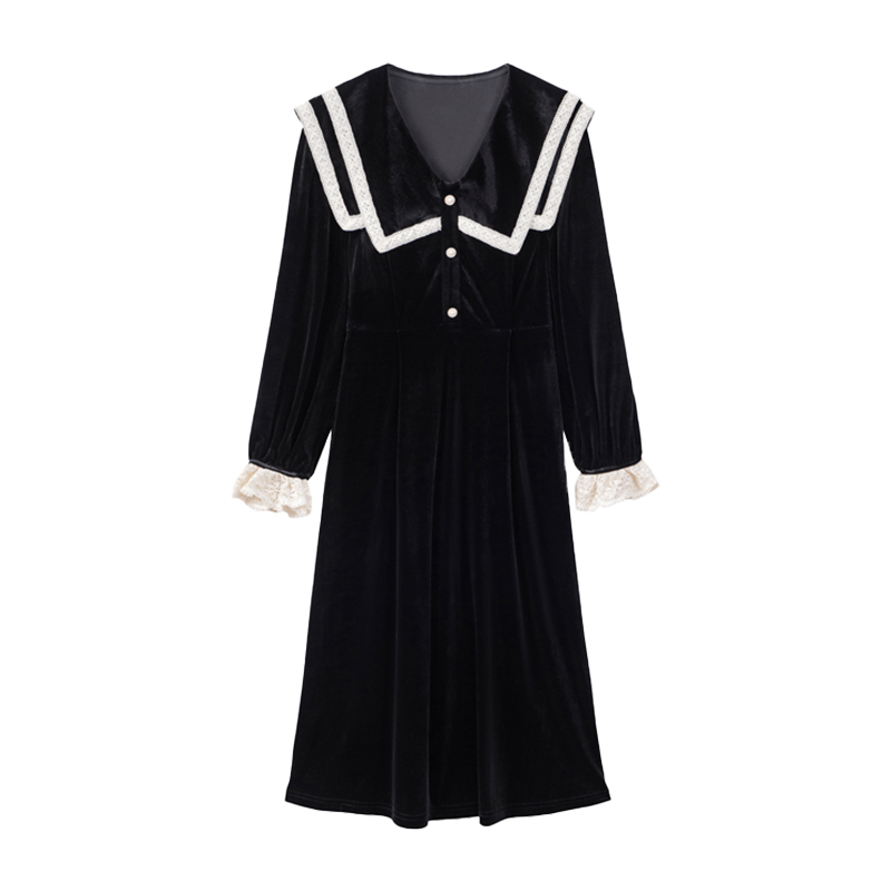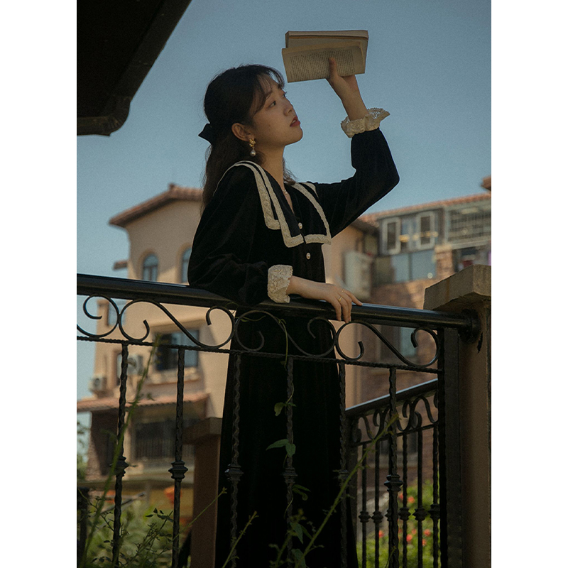 Black (originally not exclusively flattered high-sensitive stepwind design niche Versailles skirt art syndrome first love skirt dress ghost horse) Golden velvet long skirt C13L1401