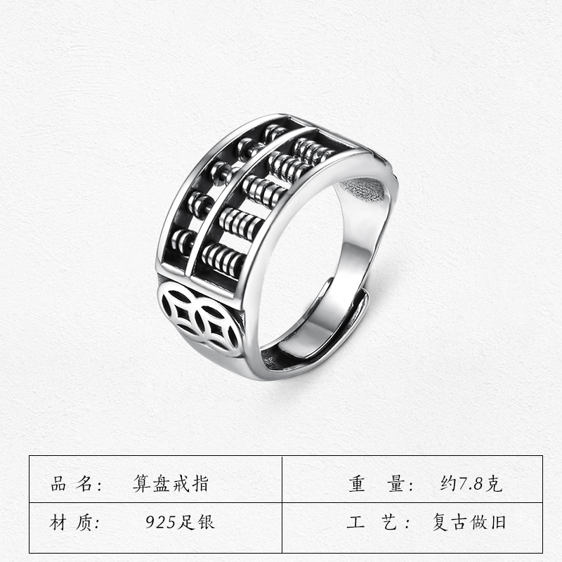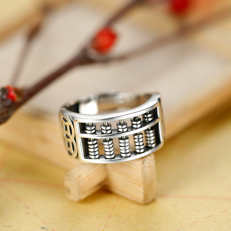 Nine music S925 silver abacus ring country tide vintage old rotating open ring men and women personalized foot silver jewelry