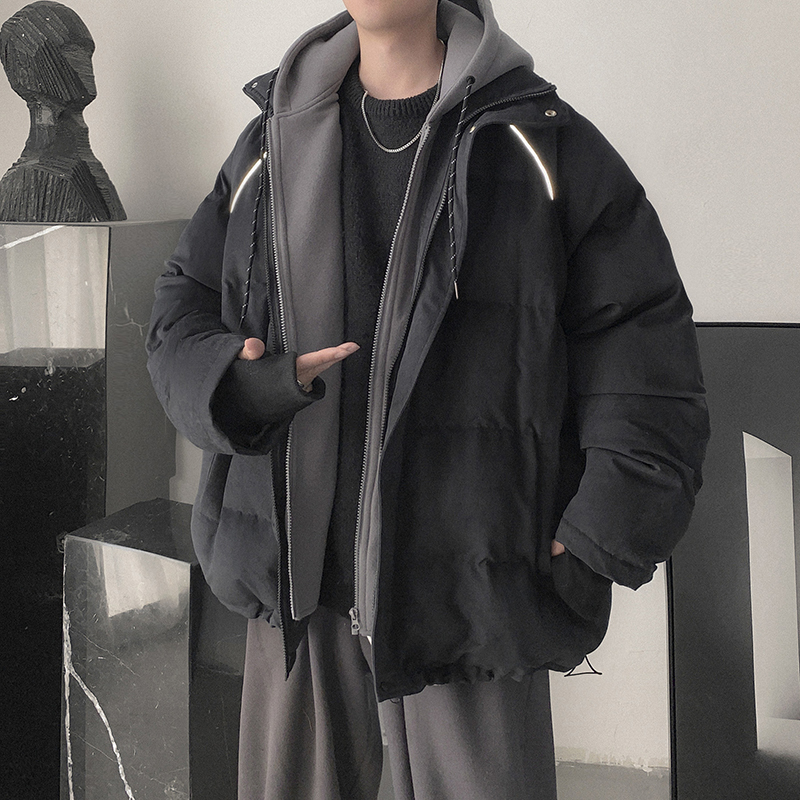 @Hong Kong Aberdeen Literature and Art Men Winter thickened fake two pieces of trendy cotton-padded men's ins loose cotton-padded jacket tide brand jacket