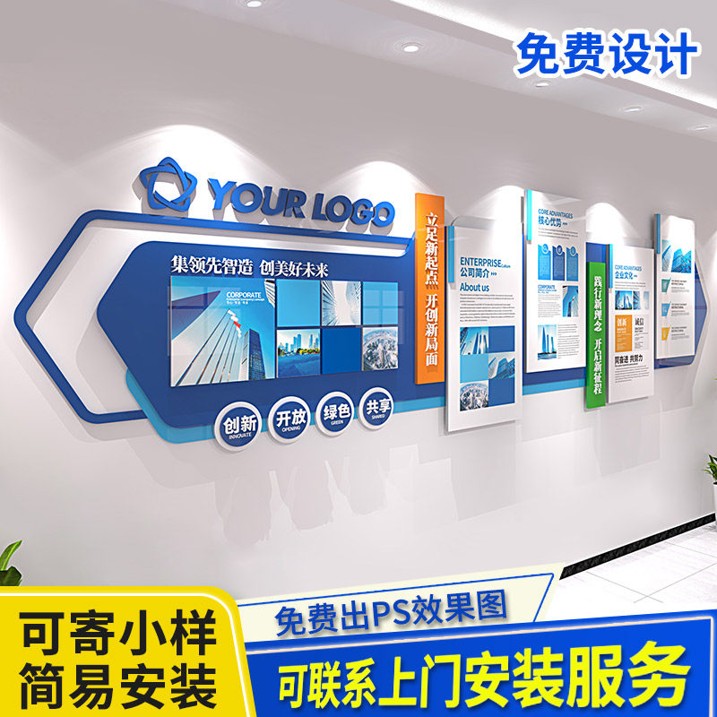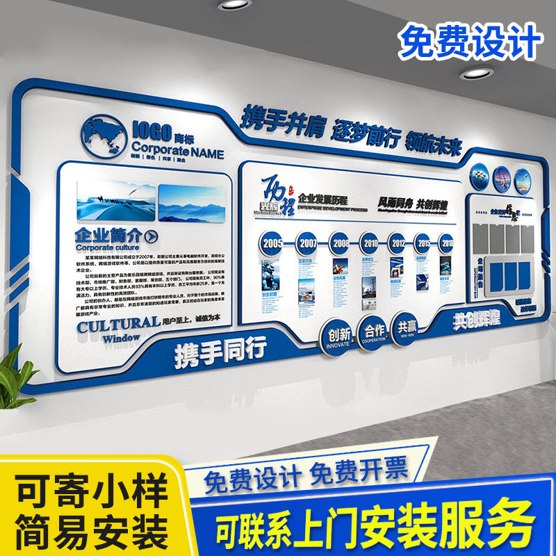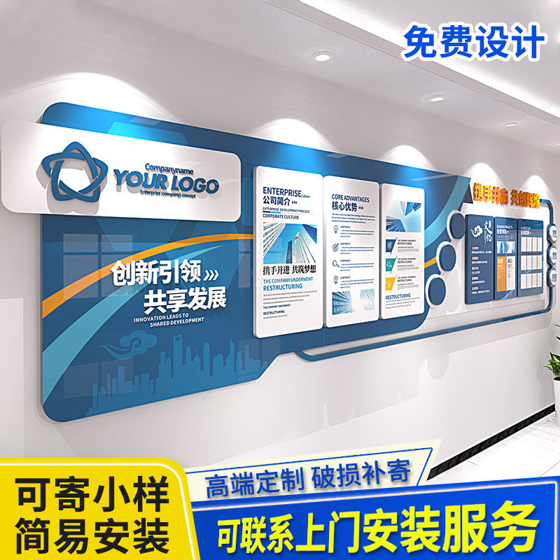 High - end custom corporate culture wall front desk image display wall office meeting room background wall decoration 3D