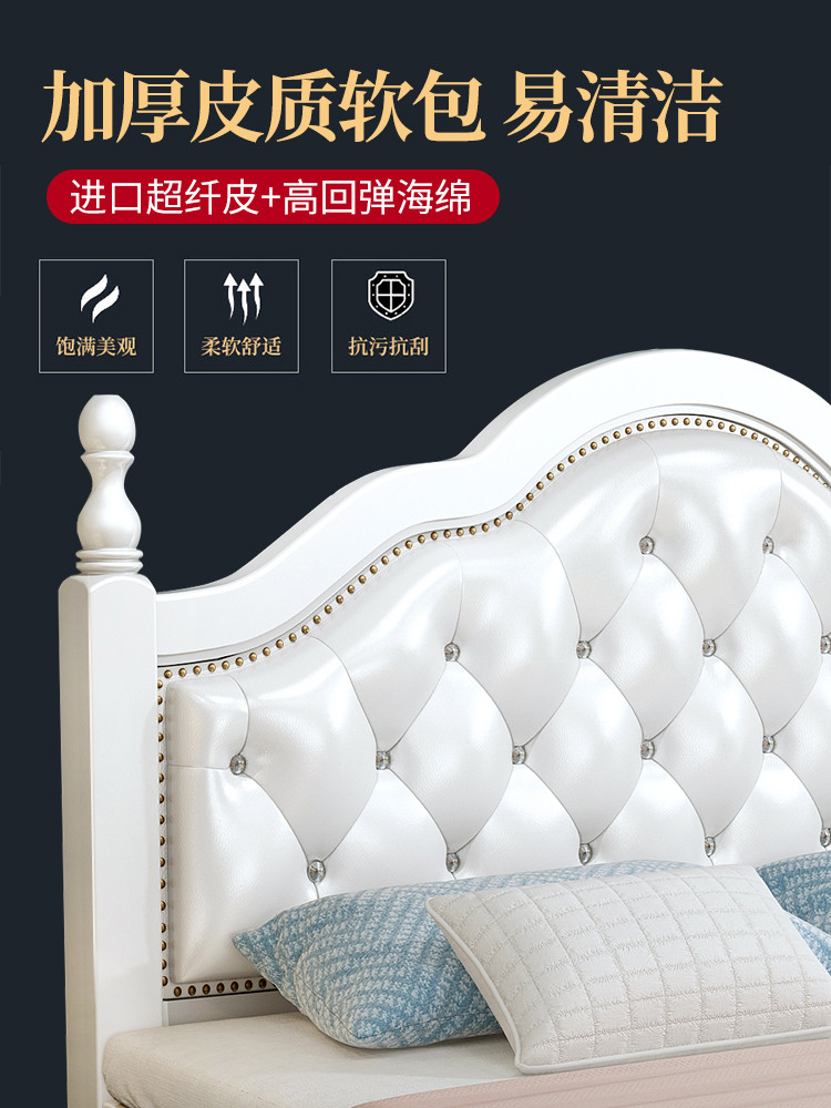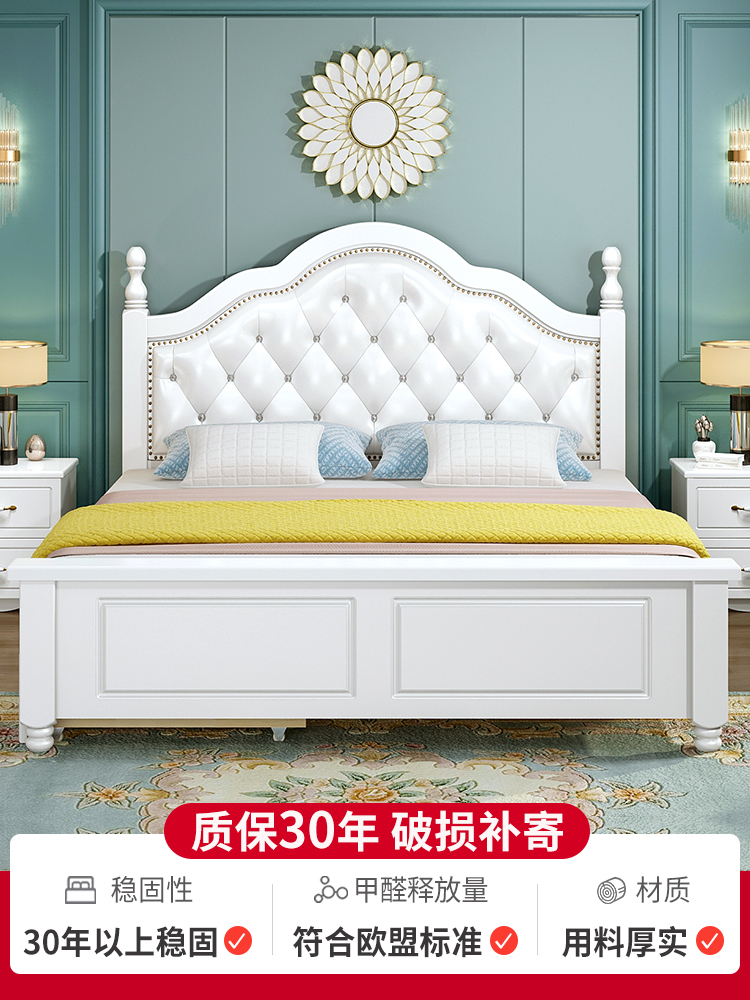 European-style soft wood bed double bed 1.8 meters master bedroom home rental room bed 1.5 meters single bed modern simplicity