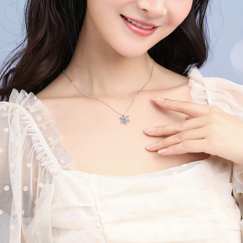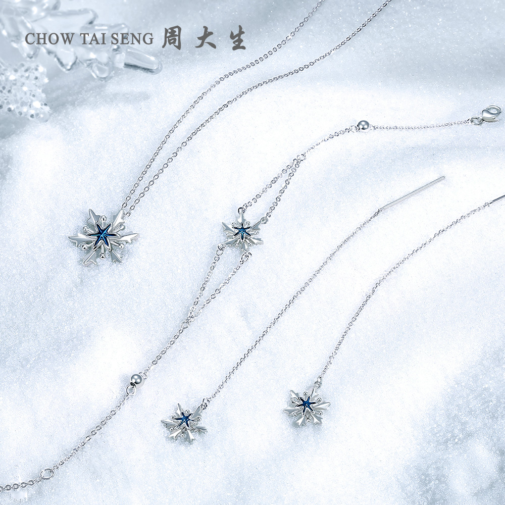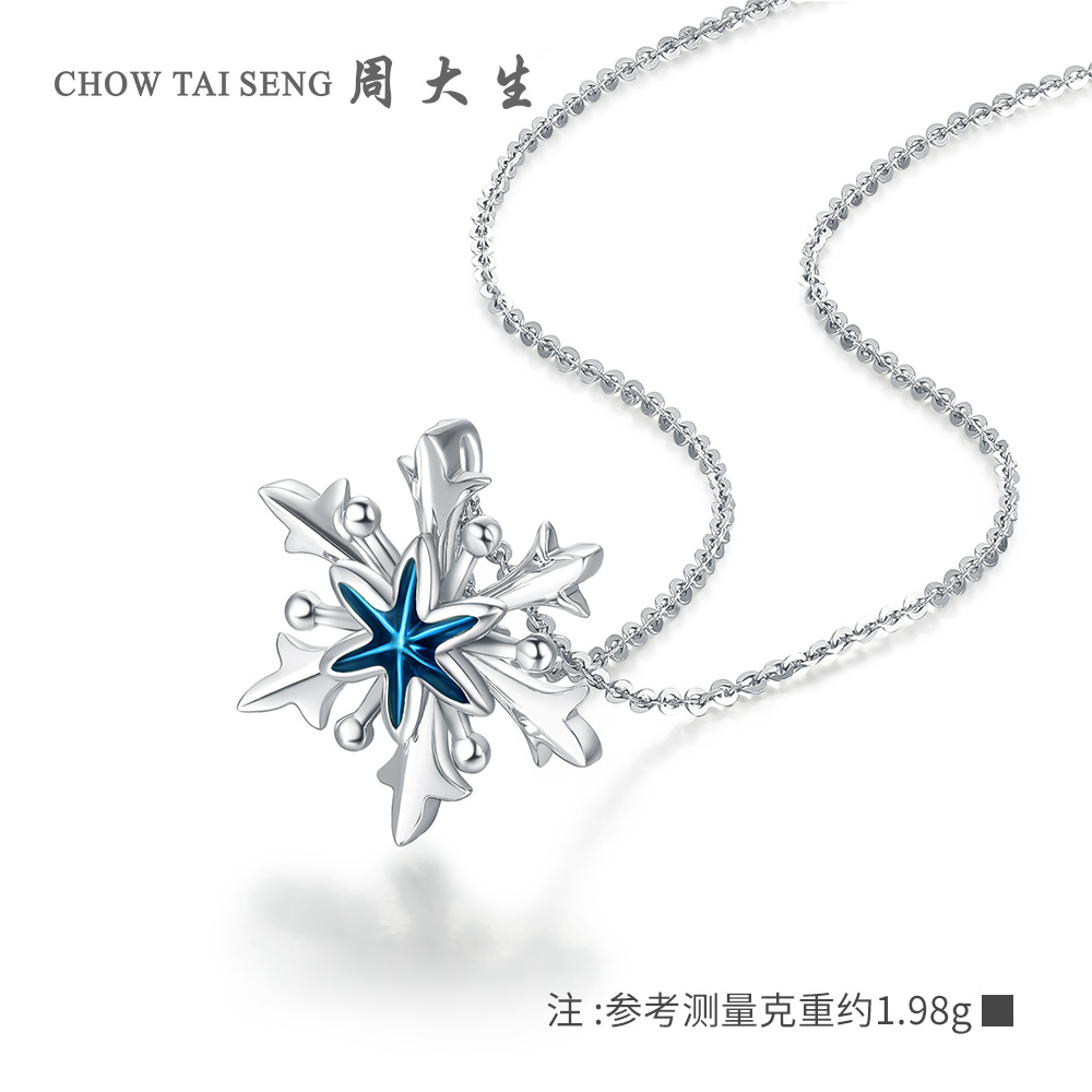 Zhou Shengsheng platinum pendant female pt950 snowflake white gold pendant enamel single pendant chain new gift to girlfriend