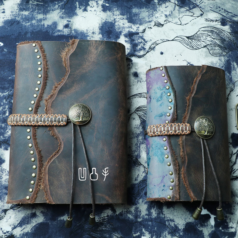 Leather handmade notebook color matching nails loose-leaf retro raw edge a6a5 notepad cowhide crazy horse creative hand account