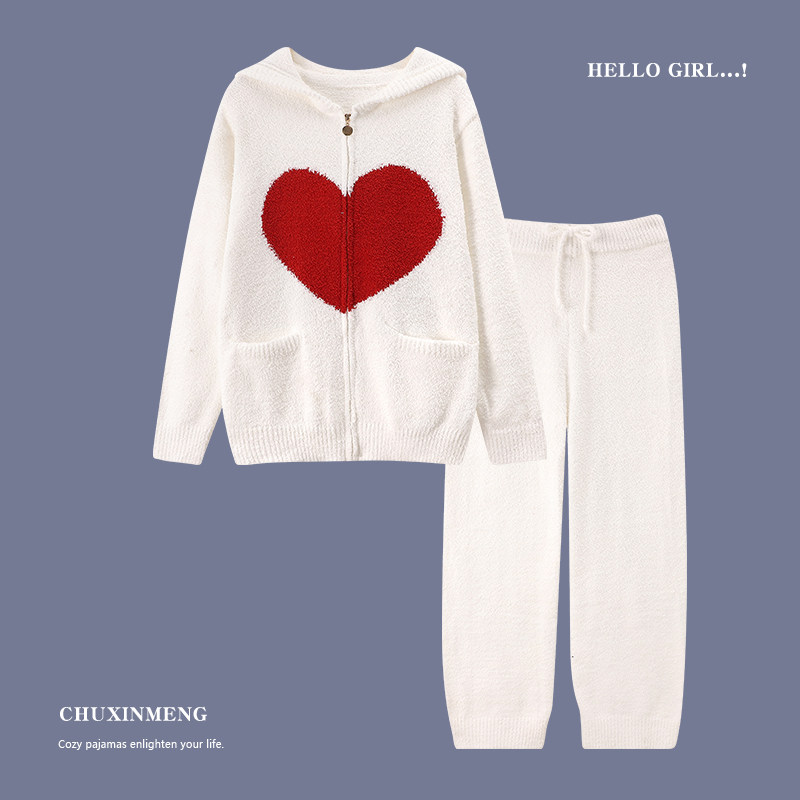 Japanese hair knitting pajamas woman autumn and winter soft coral velvet sweet sweet home suit