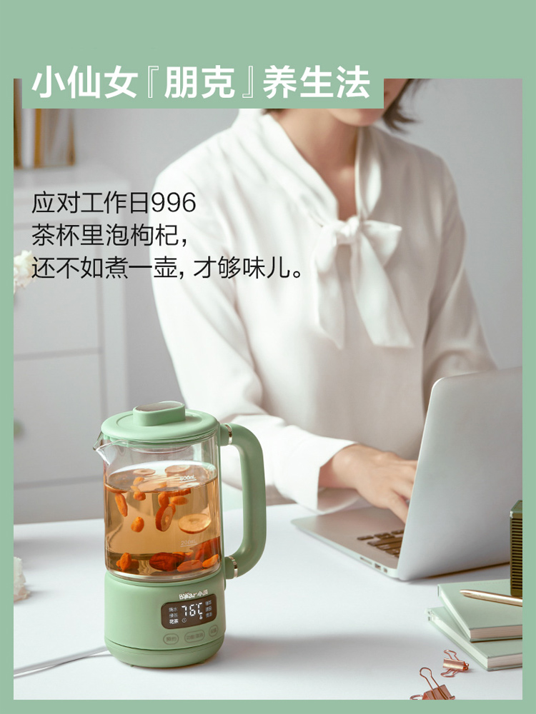 Bear health pot household electric boiled tea mini small portable multi-functional office insulation glass stew pot