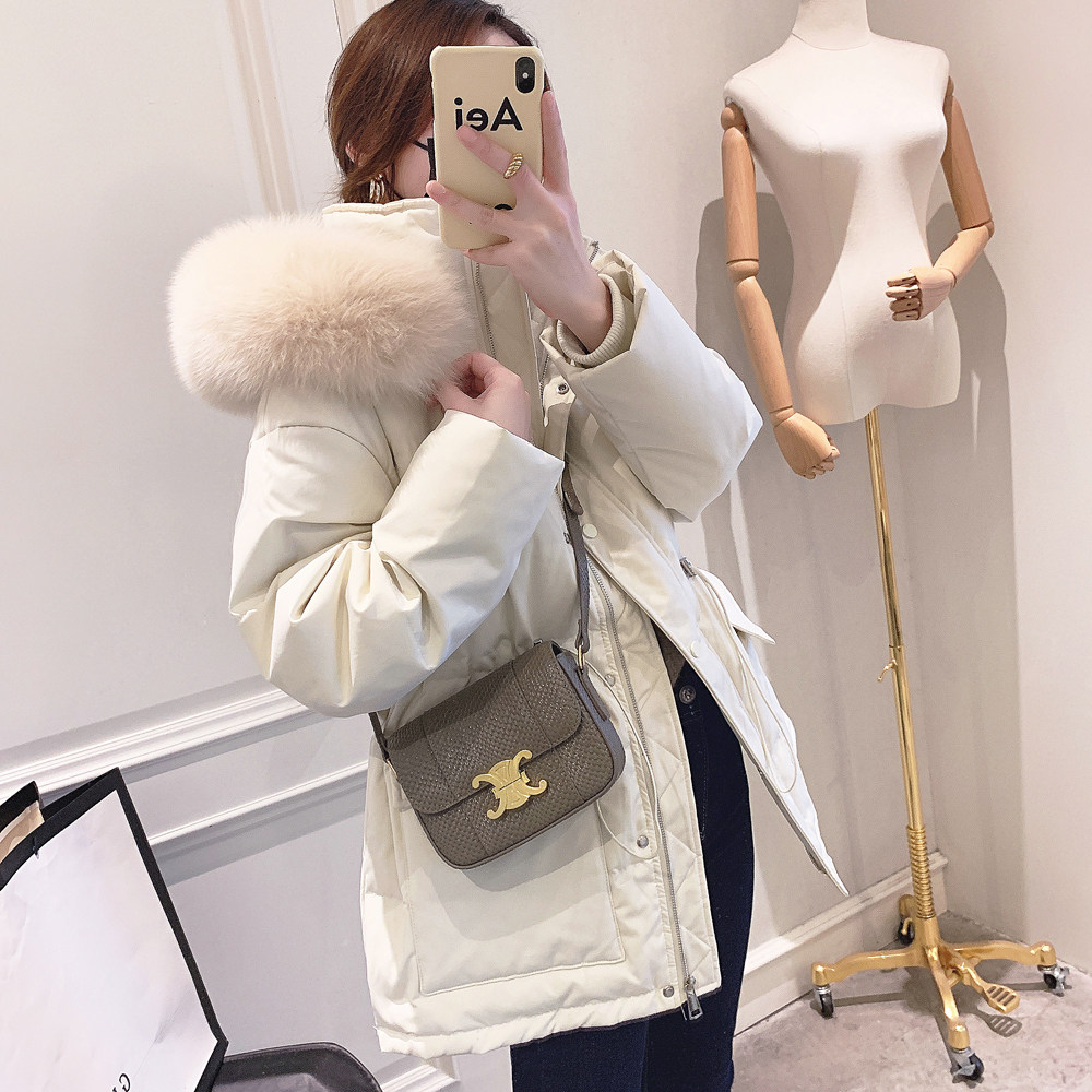 Down clothes 2021 New women's fashion Fashion winter Western Thickened Fox Great Fur Collar 90 White Duck Suede Jacket Woman