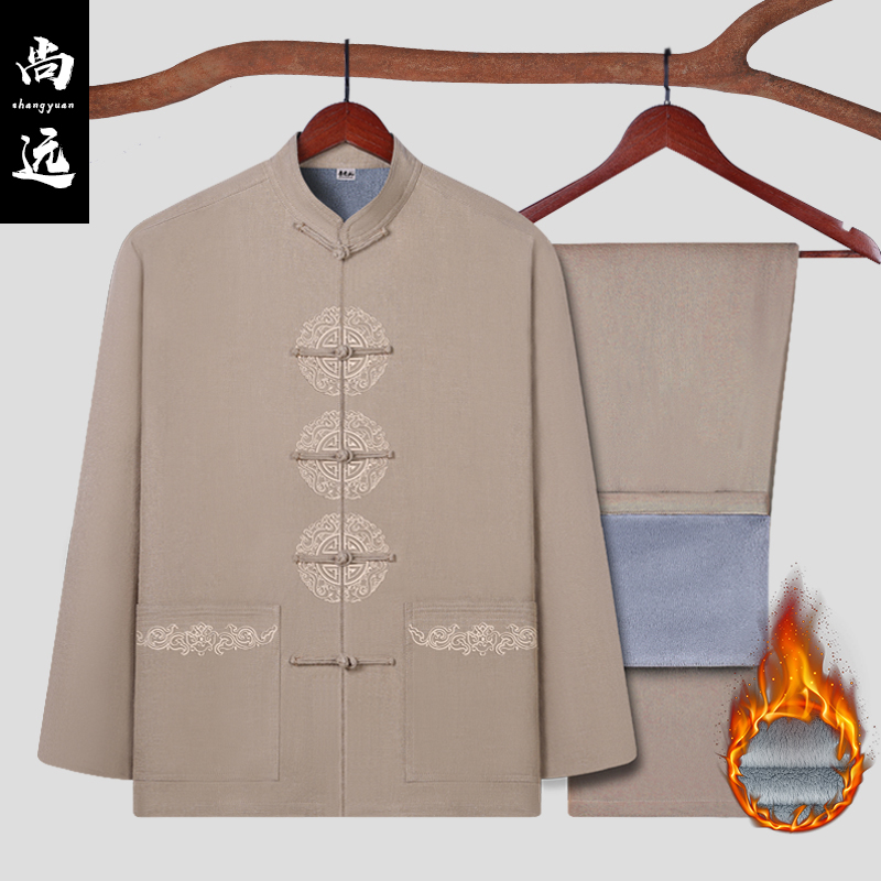 Study men's Tang suit cotton plus jacket middle-aged men's clothing leisure household dress grandpa autumn winter