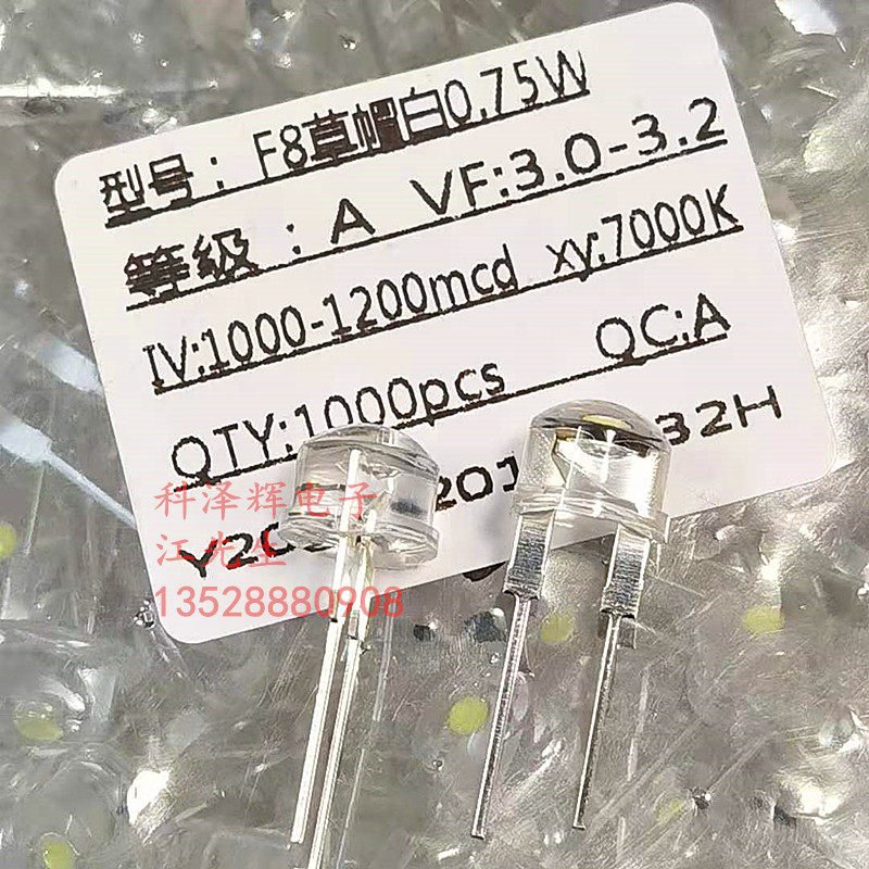 F8 high - brightness light flashlight LED light - light 8MM light - emitting diode 0 75W white white grass hat white light lighting