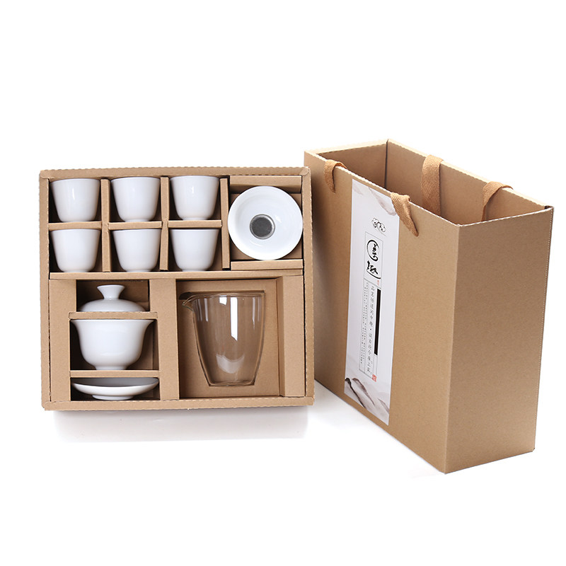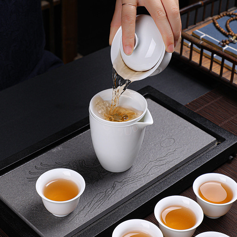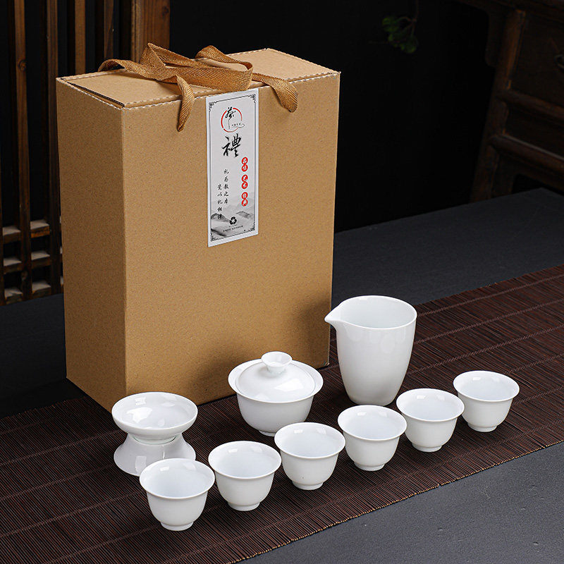 Laughing Artisan Tea Set Kung Fu Tea Tea Tea Tea Tea Tea Cup Suit White Porcelain Whole Set Tea Cup Lid Bowl Tea Set Custom Logo