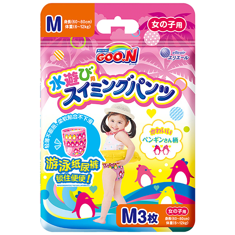 Great king baby swimming paper diaper Lara pants M* 3 pieces disposable leakproof swimming pants female baby waterproof urine not wet