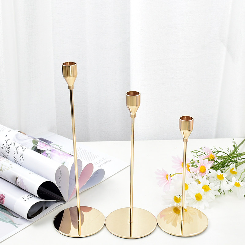 champagne candlestick small number high 22cm 1 champagne candlestick high 27cm 1 champagne gold candle holder large number high 32cm 1 gold candle 1 white candle 1