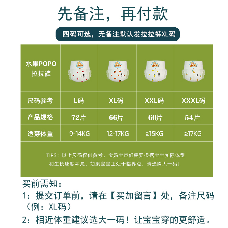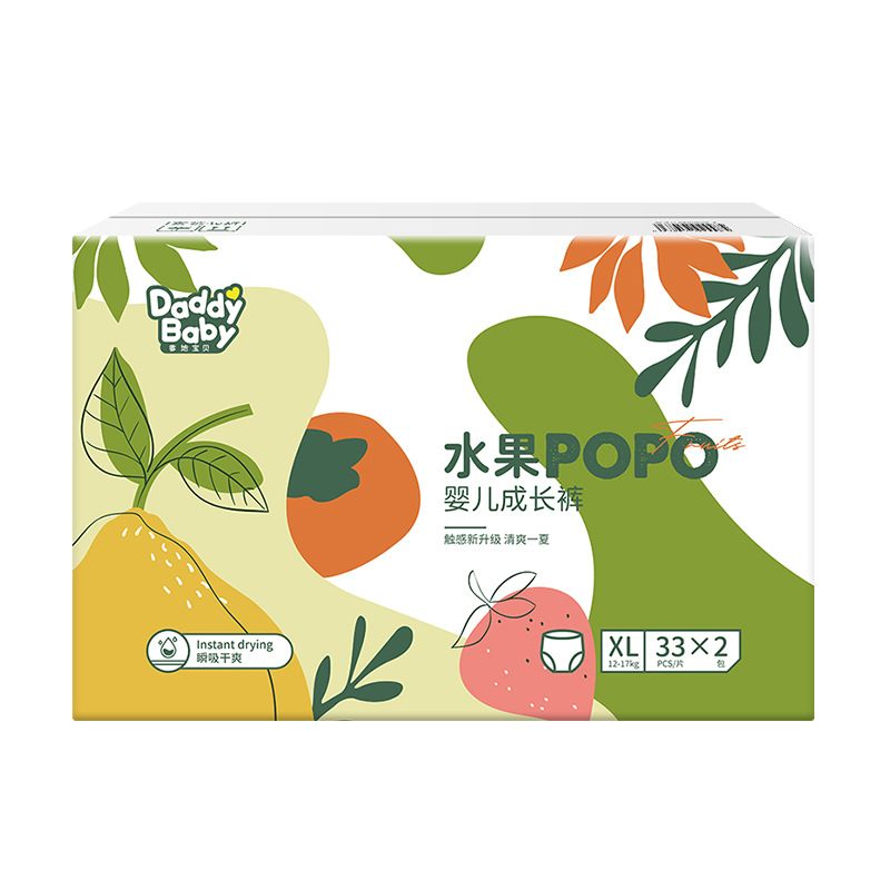 Daddy baby fruit popo baby pull-up pants L size 2 pack 72 pieces growth pants male and female baby diapers XXXL