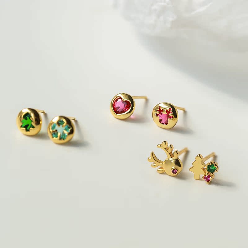 s925 silver green tree blue snowflake earrings gold s925 silver elk Christmas tree AB earrings gold s925 silver green tree blue snowflake earrings silver s925 silver elk Christmas tree AB