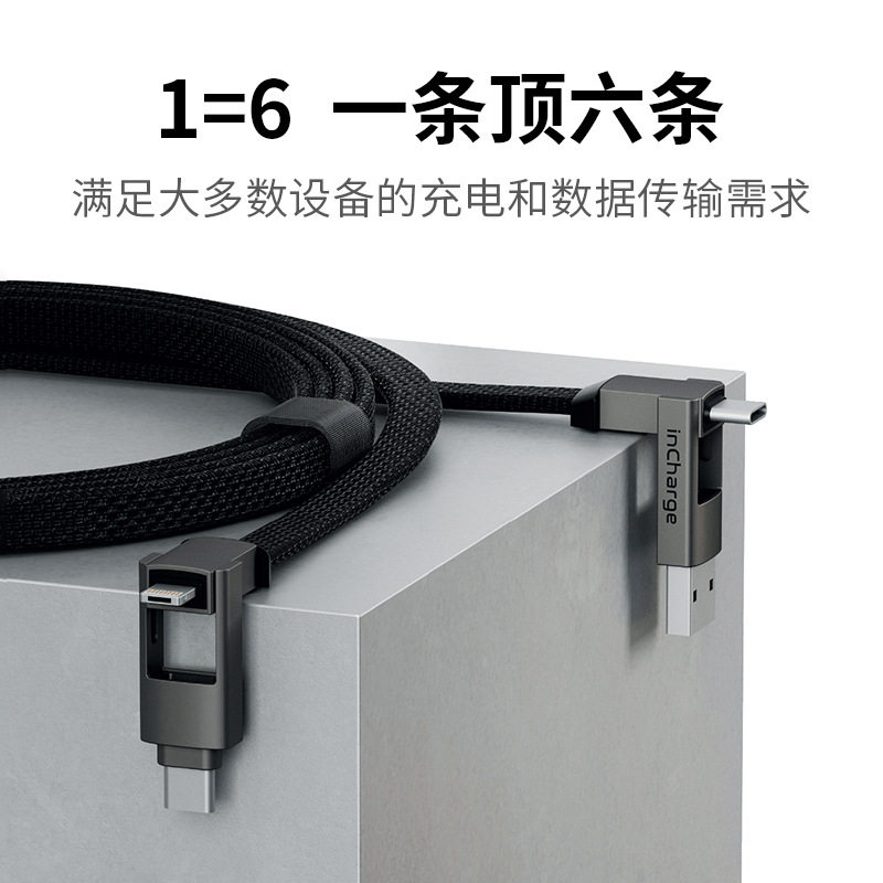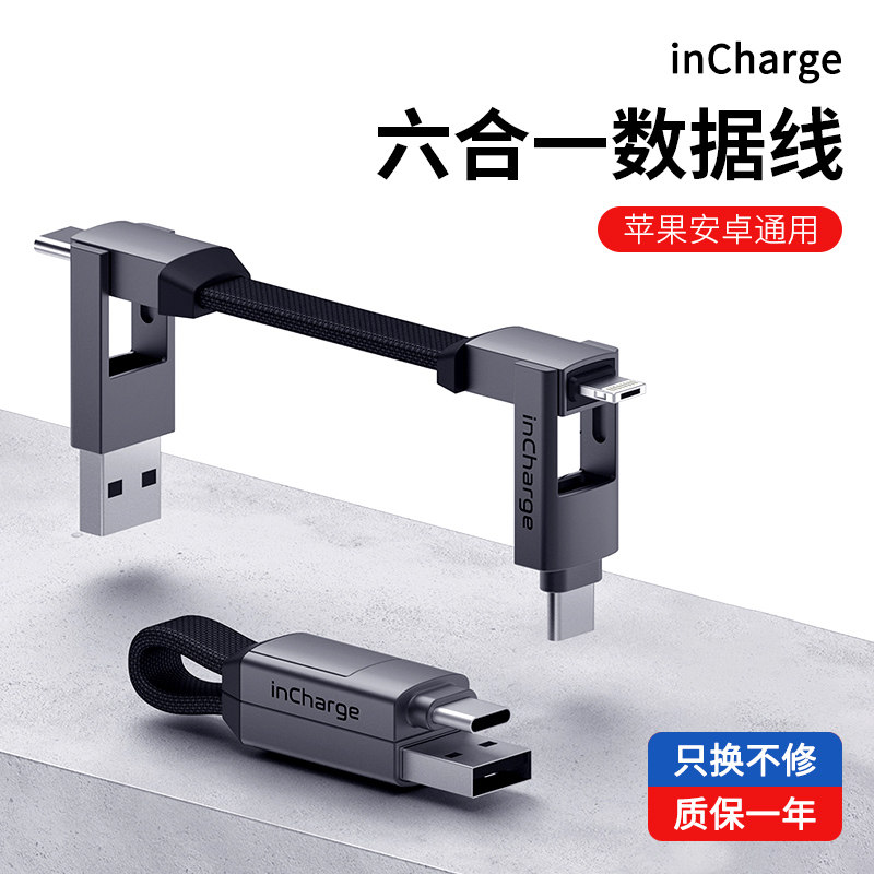 inCharge data line Apple Android multifunction key button charging ultra short line six-in-one-portable three-in-one number machine 6 Hop 1 magnetic suction SJX short USB transfer Type-C mobile charging