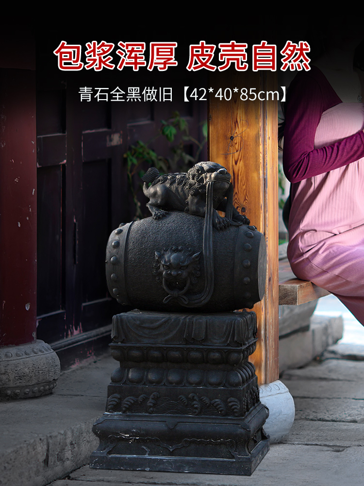 Stone carving door pier bluestone antique made old stone drum ornaments lion villa home courtyard door a pair of drum stones