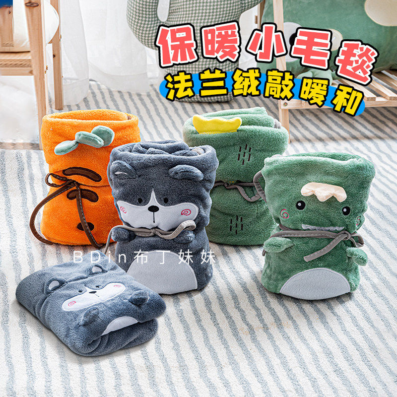Pudding sister Pet cartoon portable blanket dog cushion sleeping cushion flannel cat quilt warm autumn and winter