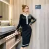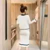 New 2020 autumn and winter fashion temperament round neck long sleeve color matching top high waist bag hip skirt knitted suit