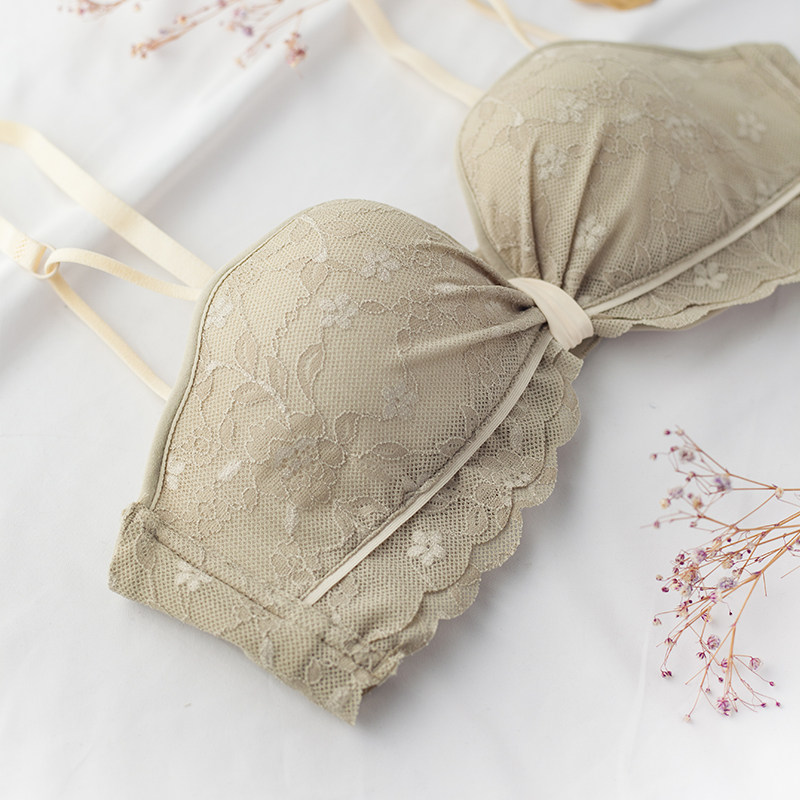 Small breasted girl underwear free of steel ring flat breasts special gathering without empty cup anti-sagging half a cup 1 2 cups bra on top