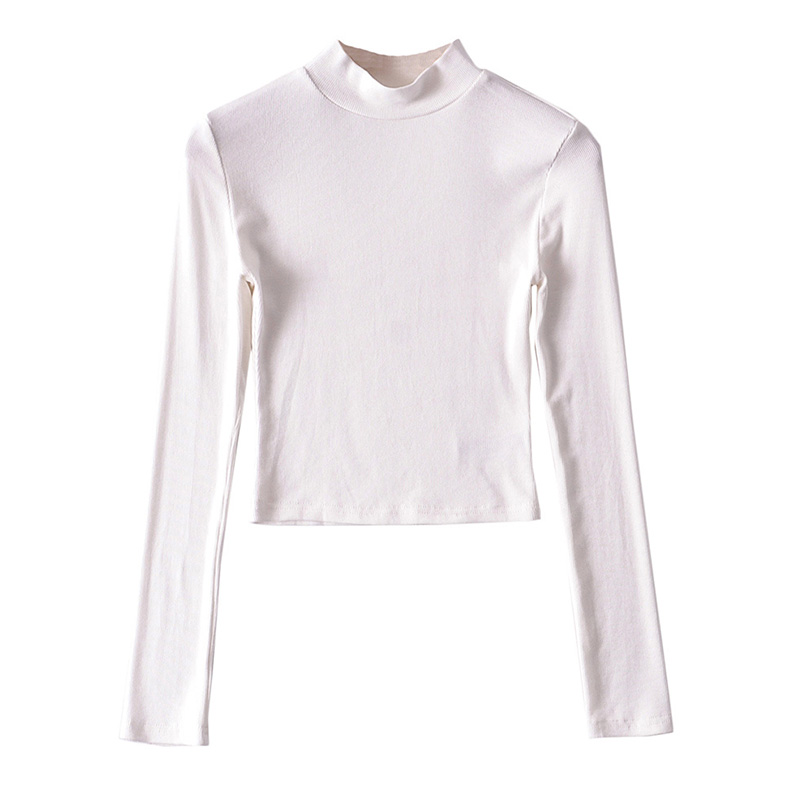 liviahome American half turtleneck wild base shirt Women's thread stretch slim solid color T-shirt short top