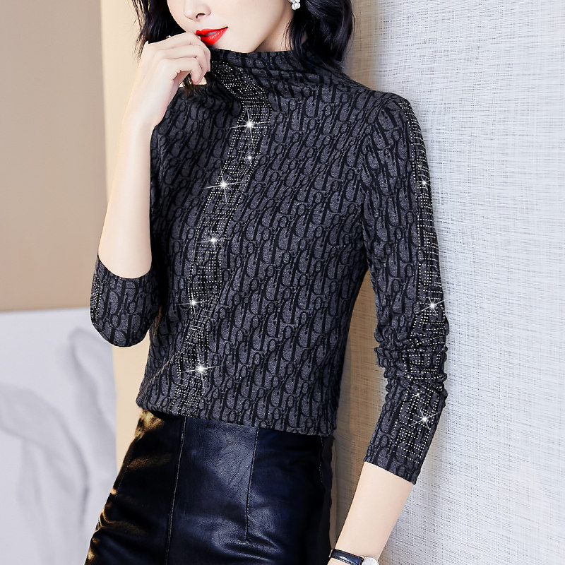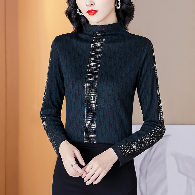Autumn and winter half-high collar bottoming shirt women's all-match high-end foreign style age-reducing temperament slim mother's small shirt to cover belly top