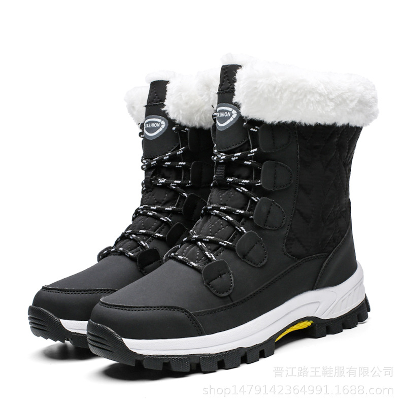 Northeast Harbin Winter Anti-cold hiking Snow ground boots Women's large cotton shoes Outdoor waterproof anti-slip thickened warm mid-cylinder