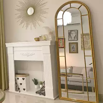 Iron full-length mirror floor full-length mirror European style wall-mounted mirror full-length mirror bedroom background wall decorative frame