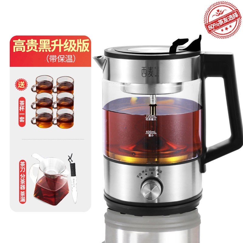 Western Wheat Steam Cooking Tea Ware Insulation Black Tea Cooking Teapot Glass Home Flower Tea Pu'er White Teapot Boiling Water Health Preserving Pot