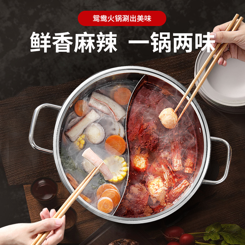 Double happiness Yuanyang hot pot 304 stainless steel induction cooker universal soup pot Clear soup hot pot household large capacity does not string flavor