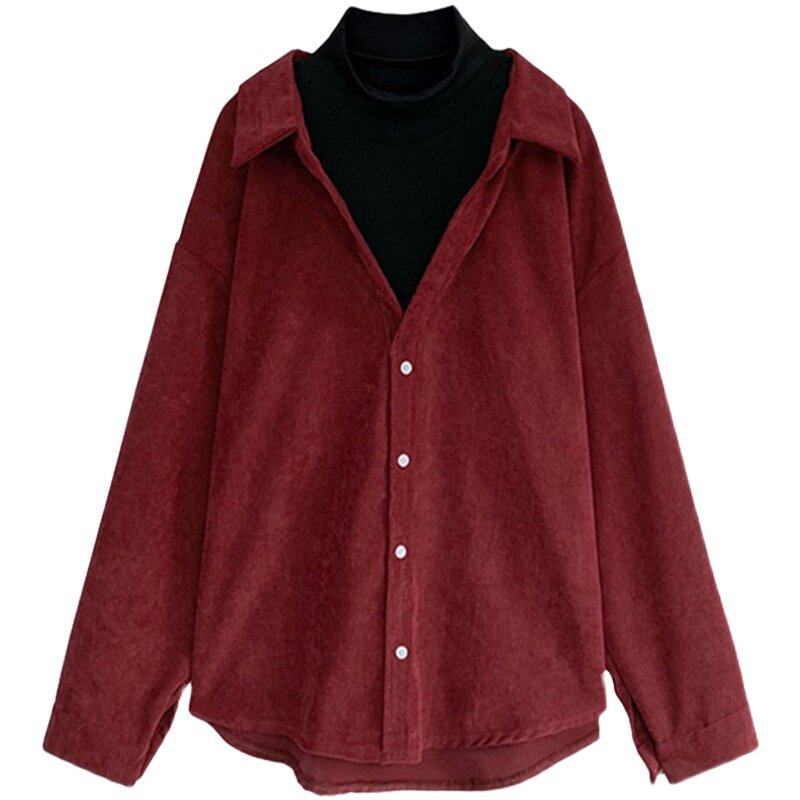 Fake two women blouses autumn winter new 100 hitch light core suede shirt retro port taste design small crowdfold wearing shirt
