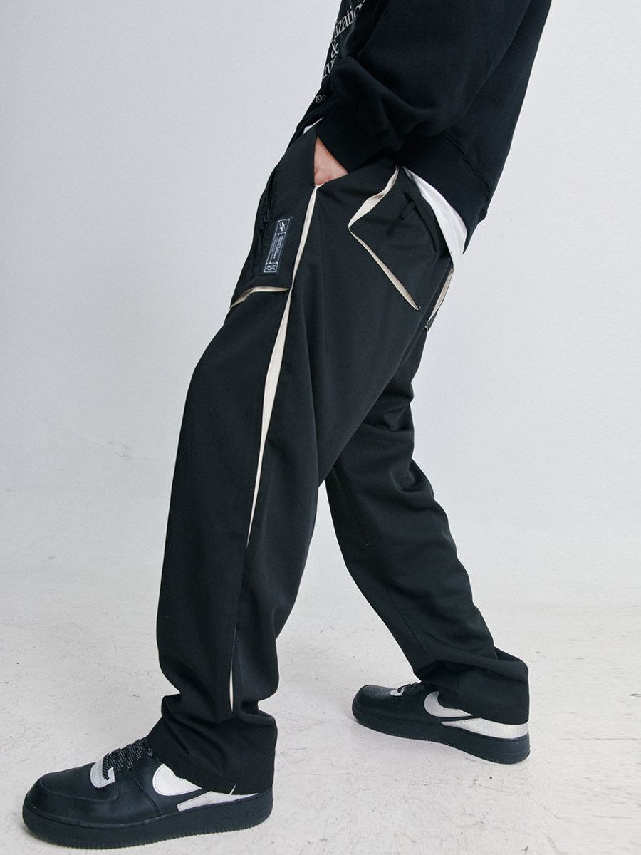 SIMPLE RIMLESS deconstructed contrast color pocket trousers men's national tide loose hip-hop straight casual trousers summer
