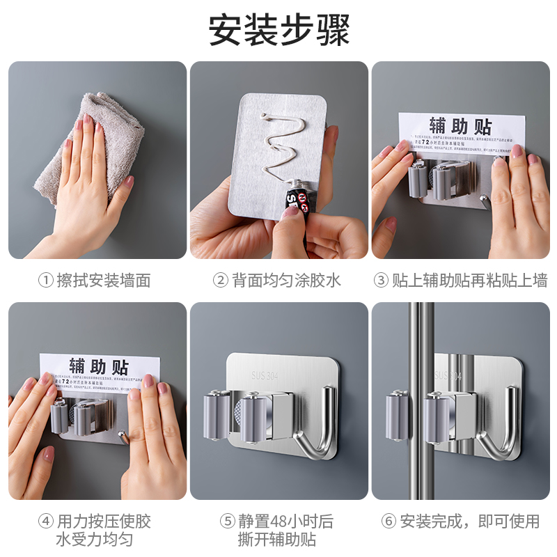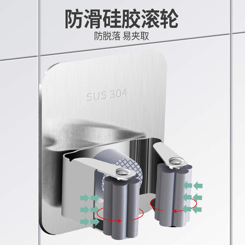 Mop hook free punch powder room storage artifact stainless steel broom strong viscose mop mop clip wall hanging