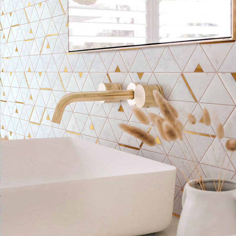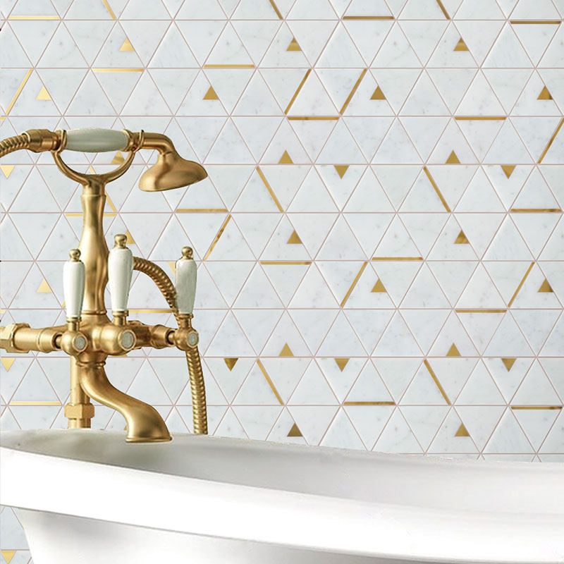 Stainless steel metal mosaic triangle natural marble tile bathroom bathroom dining room background wall tiles