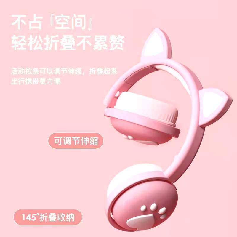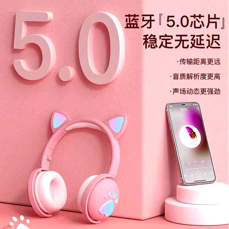 Play Jane Park net red live teenage girl hearts pink cat ears Bluetooth headphones Han version Romantic Wearing electric race Live Girl in the same style Eat Chicken listen to the main Podcast Girls present