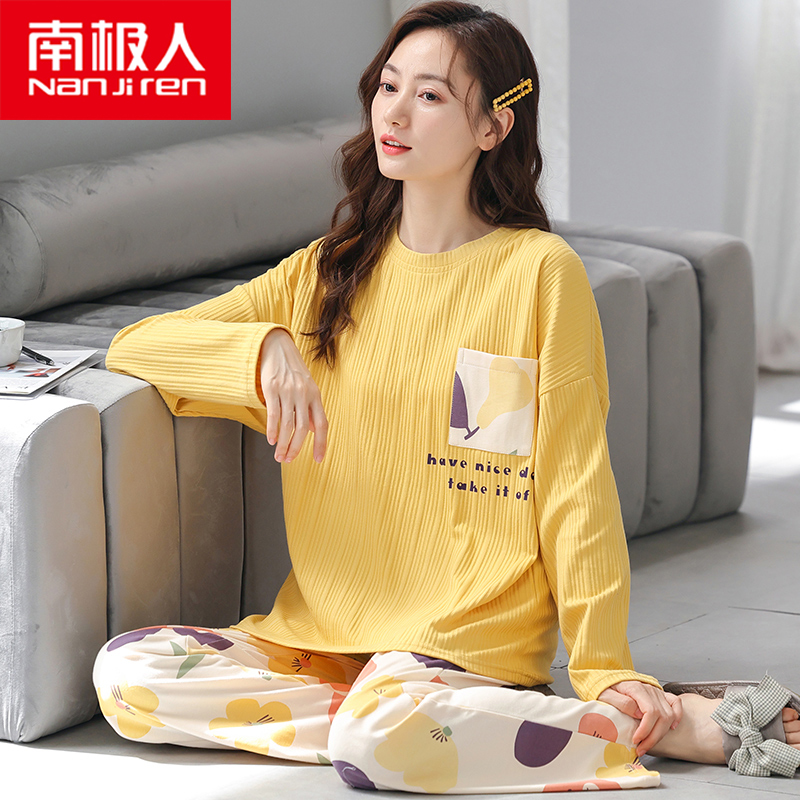 South Pole pyjamas women's spring autumn pure cotton long sleeves Increase code can be worn out of autumn and winter home The new suit 2022