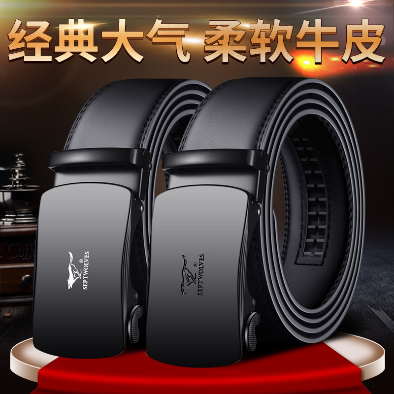 Septwolves men's belt leather automatic buckle belt high-end business pure cowhide suit pants belt new trend