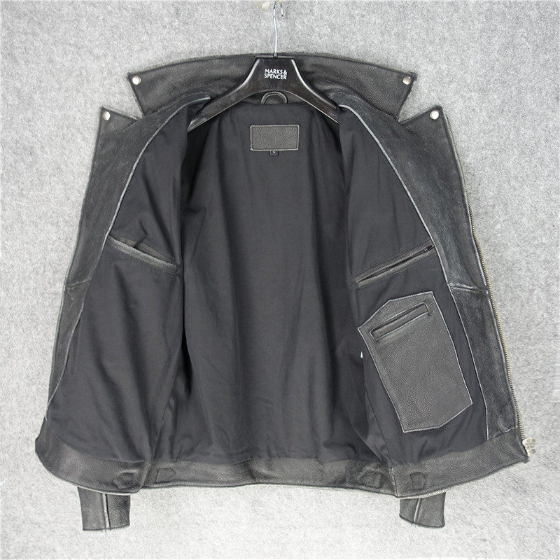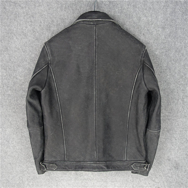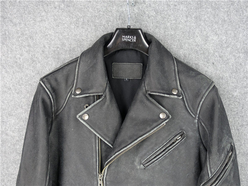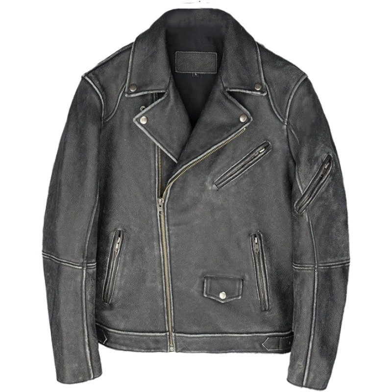 Autumn Winter New Import Old Cow Leather Leather Clothing Men's Heavy Locomotive Clothes Bicolor Tea Core Polished Sides Make Old Grey Motofu-Taobao