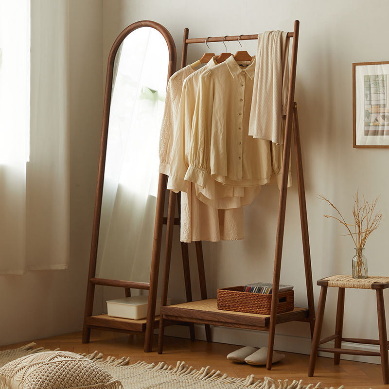 Hi Yingsen Nordic Black Walnut Cherry Wood Hat Hat Japanese Solid Wood Household with Floor Hanging Handle Bedroom Rack