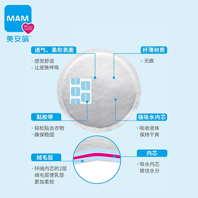 MAM Mean Germination Slim Breathable Breast Milk Mat Dry and disposable Breast Milk Mat lactation Milk Stickup Mat 30 slices