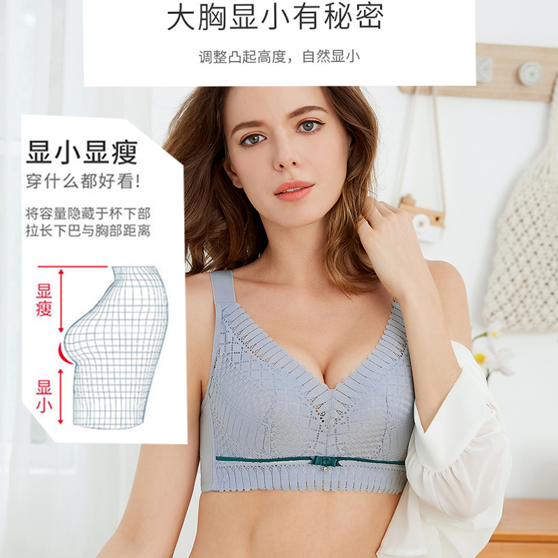 Large size underwear Female Fat MM No steel ring to collect Breast Poly-Adjusted Type Anti-Drooping Thin big Chest Explicit Little bra